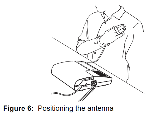 Place the antenna over your implanted device, holding it snugly against your clothing. The hand strap on the antenna should face away from you.