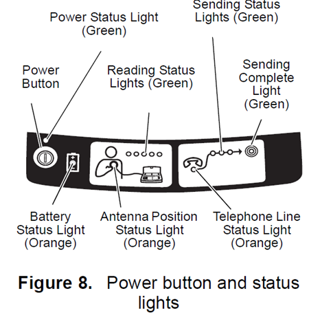 The 3 green Sending Status lights start flashing when the monitor is sending data. This process typically takes less than 3 minutes but can take up to 30 minutes.