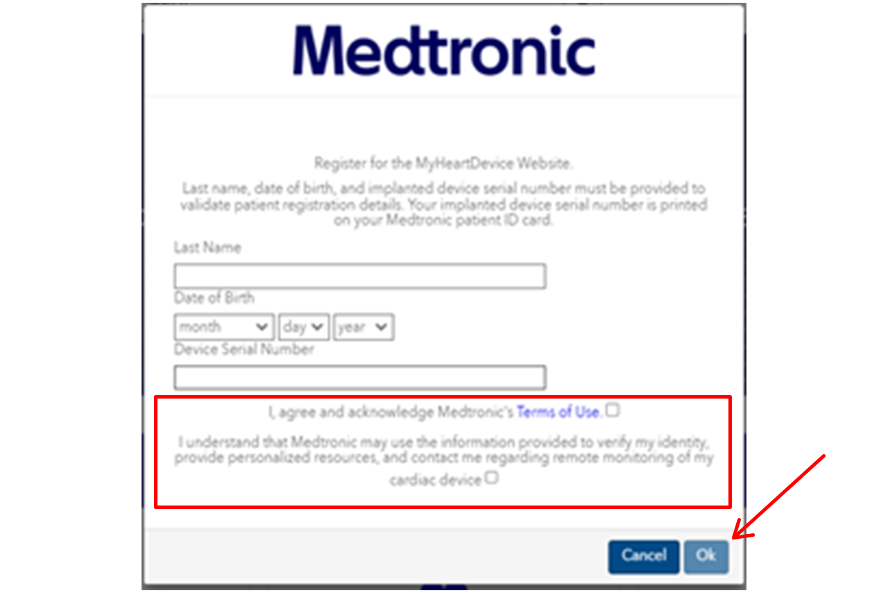 The MyHeartDevice website is available to any patient in the United States that has an implanted Medtronic heart device. Registration is a 2-step process: