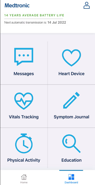 - To confirm the last sent transmission navigate to "Dashboard" in the MyCareLink Heart™ app.